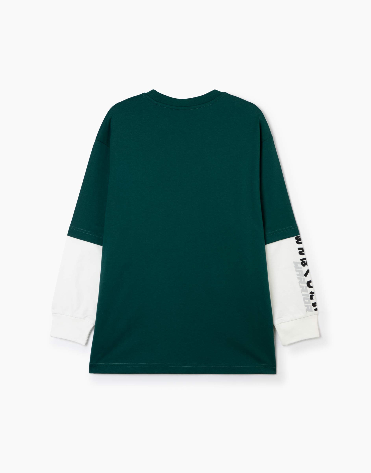 Зелёный лонгслив с аниме-принтом и двойным рукавом для мальчика