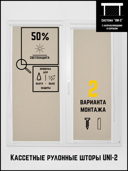 Рулонные шторы Потёмки UNI-2 Лён бежевый 140 Слева-Справа , размер