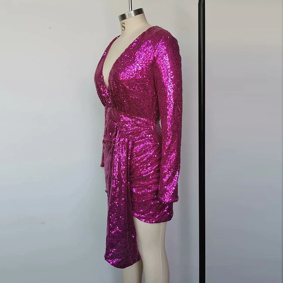 Женское платье с v-образным вырезом, тонкое, с блестками, сексуальное